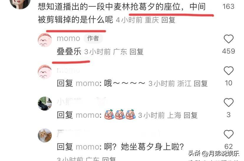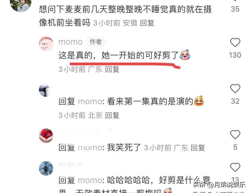 这位剪辑师在社交平台的评论区回复了许多观众猜测的问题,包括麦琳抽烟、麦琳黄圣依打架、是否重新剪辑、杨子是否正常等