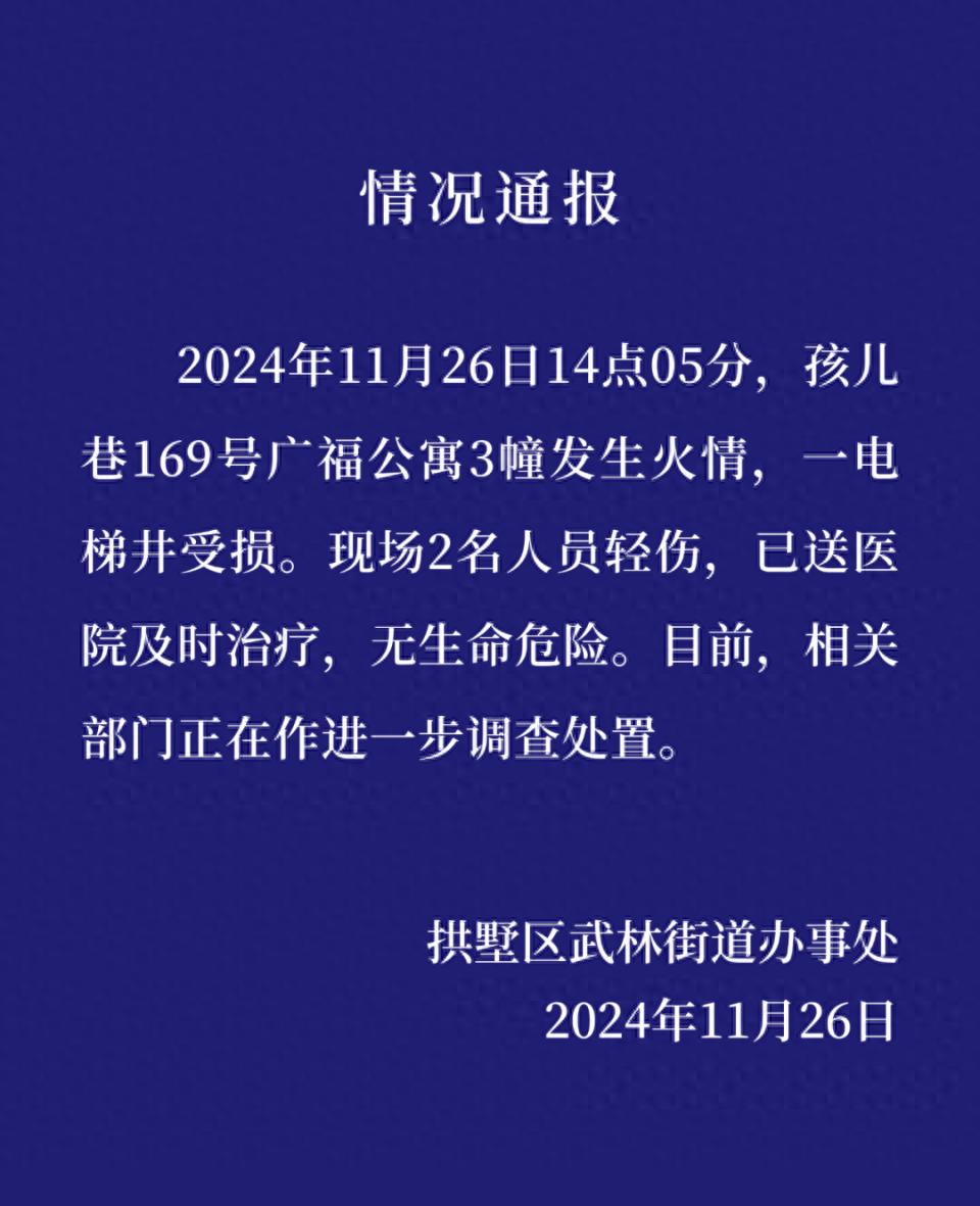 刚刚,拱墅区武林街道办事处就此事发布情况通告:
