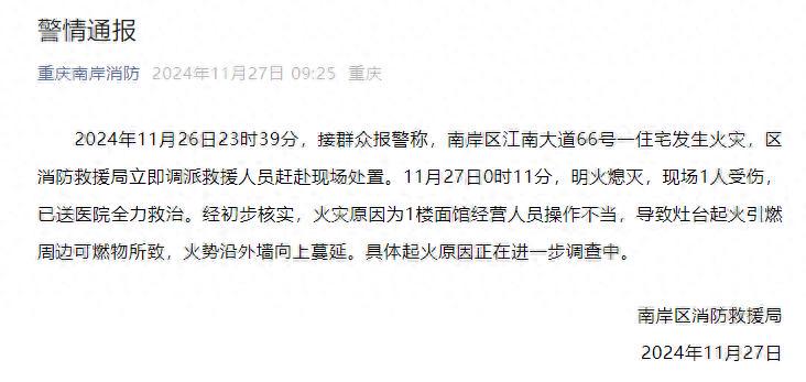 11月27日,重庆南岸区消防救援局发布警情通报。