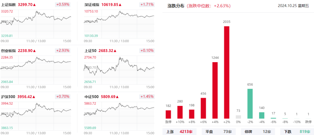 盘面上,市场迎来集体反弹,三大指数全线飘红,其中受新能源赛道的带动,创业板指涨幅居前。