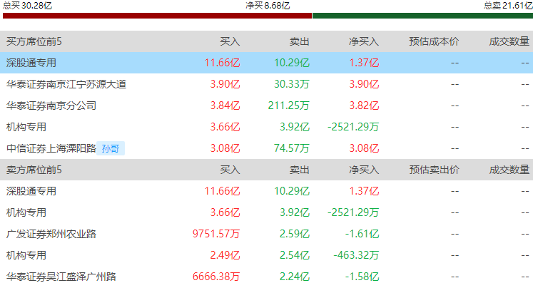 4.龙虎榜风口资金游资参与前五个股: