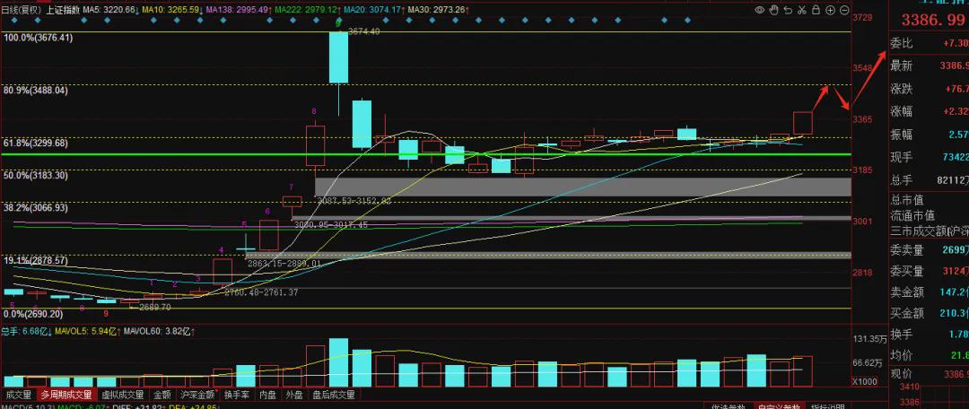 还记得上周市场开始短线下跌的时候,很多人开始疯狂强调牛市没了,一个劲的看空唱空,在忍无可忍的时候,我在昨天晚上公开发了一张图,这几个字送给所有兄弟姐妹们,今天的走势已经给出了答案,但还是那句话,不要跌了就熊市来了,涨了就有信心,永远不要追涨杀跌,我们的目标是波段,是牛市,不要短视。
