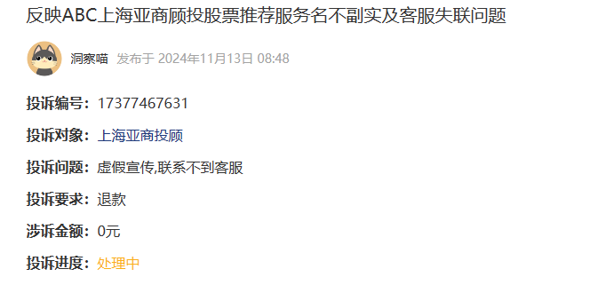ABC上海亚商顾投退款怎么退?股票推荐服务名不副实及客服失联问题